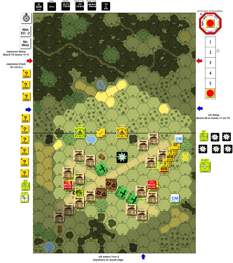 | Guns: A:0 Type 89 Heavy Grenade-Launcher D:3 M1A1 75mm Pack Howitzer x 2 M51 Multiple .50-cal MG Carriage M2 60mm Mortar |