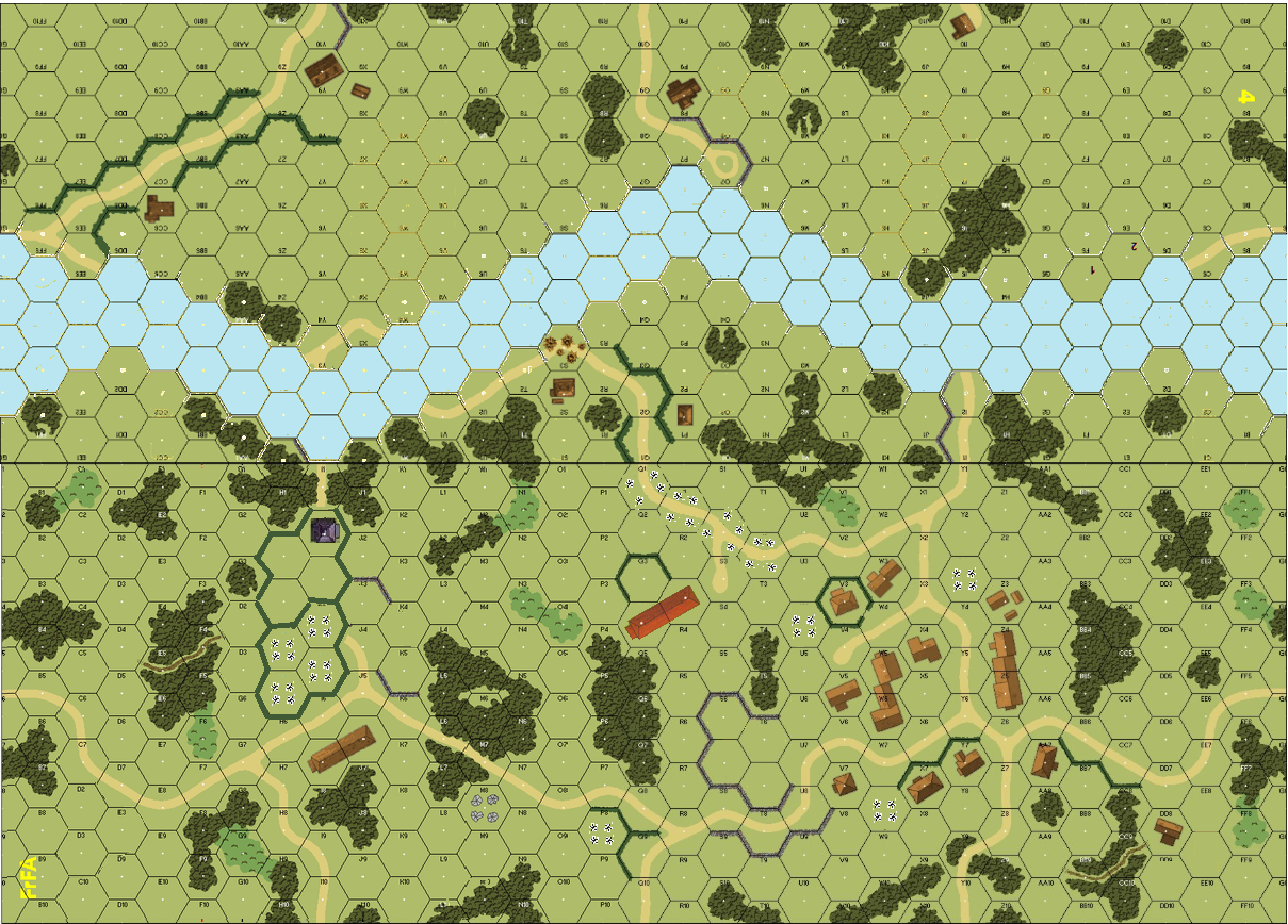 | Misc Rules: | DTF SR's, SW Purchase, Mud (E3.6), Bldgs: Ground Level Only. Walls: Hedges, Roads: Paved |