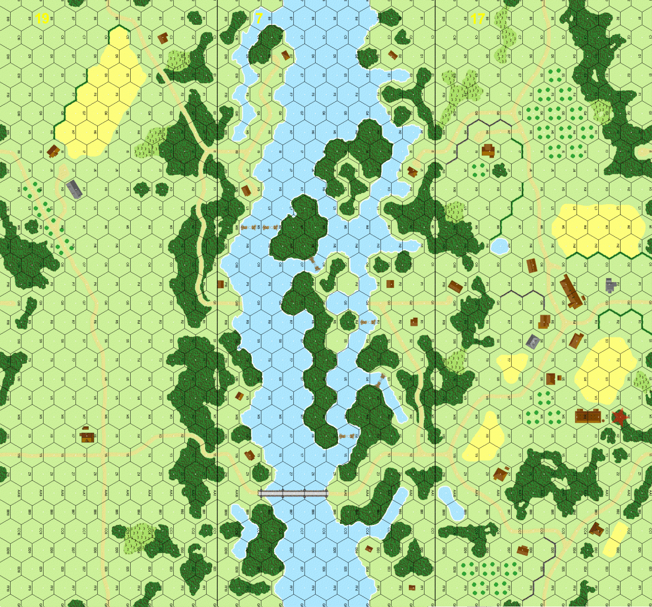 | Misc Rules: | Marsh: Woods, River: Deep. Fording (B21.4) hexes 7M8, M9, O6, R3, U3 and X4. |