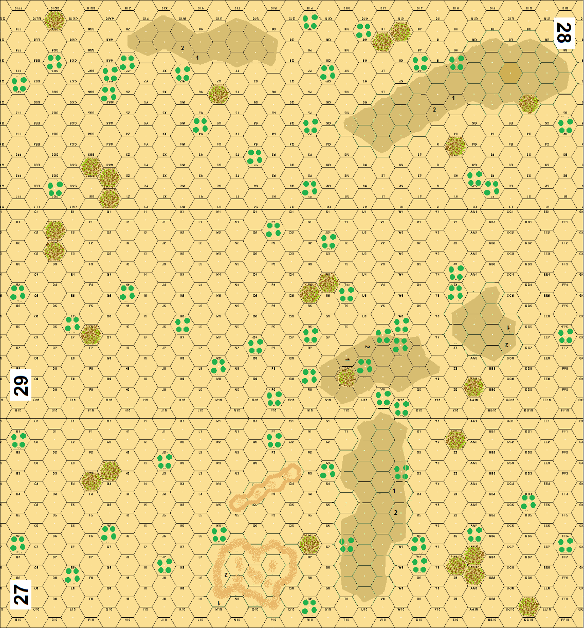 Rootin' started the session well by failing both Sighting Task Checks, ruining my plans for the AA guns I had set up. My defenses were spread out as much as possible to take advantage of the defensible terrain (more like shrubbery) and to force as much movement over open ground as possible. The downside is that anyone that breaks will be eliminated, or at the very least easily isolated from the rest of the force.