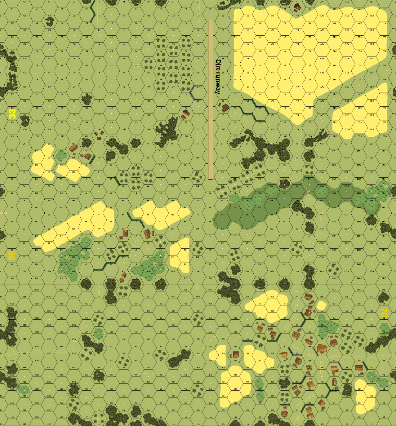 | Misc Rules: | PTO, LJ (Walls/hedges are bamboo thickets Huts, RR overlay = dirt runway) A: Paradrop |