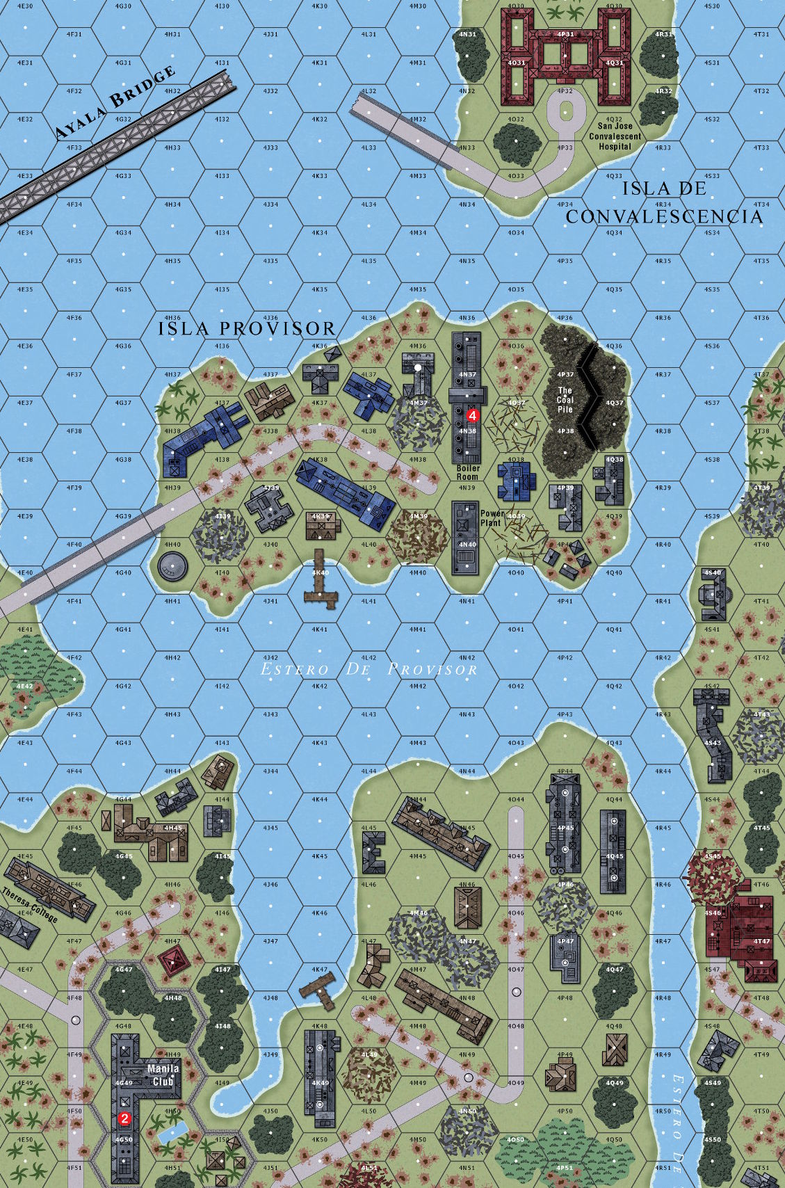 Situated along the south shore of the Pasig River, Isla Provisor was 400 by 125 meters in size, but with no sandy beaches, no seawall, no tropical jungle; just factory buildings, tin-roofed workshops, a power plant, a boiler room, and a large coal pile that covered the eastern end of the island. The first American assault to take the island met with disaster. One boat made it across the estero, while another was hit by motor fire and the survivors swam ashore. The Americans' first objective was the boiler room, but the resolute Japanese pushed them back out. For the next 18 hours the small group of Americans would wait out heavy artillery barrages from both Japanese and American guns. At 0230 hours, six more boats tried crossing the narrow stretch of water, but the moon came out from behind some clouds and three boats were sunk. Beginning at 0500 on 10 February, Americans and Japanese stalked each other in the tangled rubble on Provisor.Attacker: American (Company E, 2nd Battalion, 129th Infantry Regiment, 37th Infantry Division and 117th Engineer Combat Battalion)