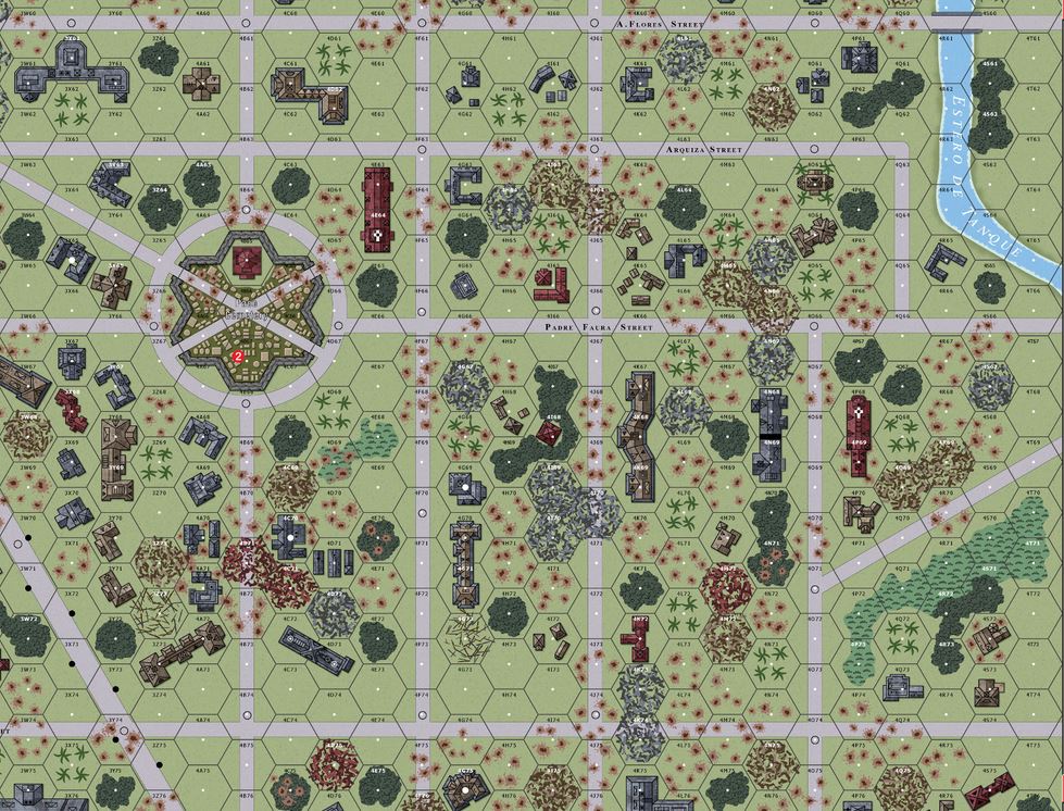 Not much happening on Turn 1, other than I think I eliminated all Jap dummy stacks (one by wasting an opp fire from my kill stack). Turn 2 these men move up to what would turn out to be a sneakily good view into all church locations. But it also saw me stupidly advance a whole stack into a well-placed mine across the street from the church. These men wouldn't leave the hex until the last turn. An HIP gun popped up guarding the SE approach to the church, while another sprang up in the south, only to malf and breakdown for good. The Amis started dishing out some punishment, trading a HS for two Jap squads. Turn 3 was rather static, as the Amis looked for ways to soften up the defense, the only casualties being a Jap HS and LMG blasted to bits by my kill stack. Turn 4 saw the Amis make some inroads. In the south, aided by their reinforcement and the northern gun crew being knocked out of position, they were able to cross the street. The northern battle remained a stalemate, while the only casualty for the turn was an Ami HS. Turn 5 just saw the Japs lose a crew, as the Ami push from the S and SE ground forward. Turn 6 saw the Amis make it into the SW church, causing the Japs to lose a 9-1 and squad. Turn 7 was deadly, as the Japs clung to the SW church. They lost the other ART for good, but the last one sprung up behind the northern church. This one would prove instrumental in the closing minutes. The Amis burnt out a FT and lost a BAZ, a hero, and two squads. The Japs for their part lost two crews, a HS, and an 8-0. So it would come down to the silly endgame rush on the last turn. I figured the northern church was unattainable, as he could simply self-break and rout into either the cellar and/or the upper level. That meant going for the cemetery. The west side was out as it was guarded by the HMG, so it would all come down to charging through the SE gate. Perhaps had I started by surge in the turn before I would've stood a chance. Perhaps had I started by surge in the turn before I would've stood a chance but, while they avoided casualties, the Amis were only able to get 1.5 squads through the gauntlet, thus coming up short. Probably favoring the Japs somewhat with all their heavy weaponry and sneakiness, but to Scott's credit he had a very good defense. As another opponent of mine mentioned, the smaller scenarios in SF seem decent for the most part. Unfortunately the larger ones that I've played are all complete dogs, and I've heard the same about the CGs. Nevertheless, this game at least was enjoyable.