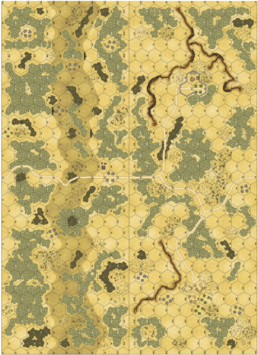 | Misc Rules: | DTO, Woods are Cactus Patch (B14.7), Valley LFT3: Level 1 Hill, HW (A25.23) x1 Ea. |