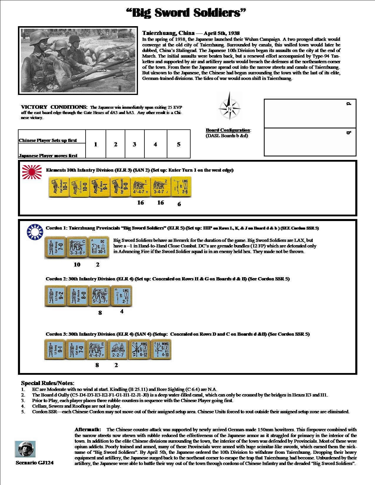 In the spring of 1938, the Japanese launched their Wuhan Campaign. A two-pronged attack would converge at the old city of Taierzhuang. Surrounded by canals, this walled town would lated be dubbed, China's Stalingrad. The Japanese 10th Division began their assaults on the city at the end of March. The initial assaults were beaten back, but a renewed effort accompanied by Type 94 Tankettes and supported by air and artillery assets would breach the defenses at the northeastern corner of the town. From there the Japanese spread out into the narrow streets and canals of Taierzhuang. But unknown to the Japanese, the Chinese had begun surrounding the town with the last of the elite, German-trained divisions. The tides of war would soon shift in Taierzhuang,