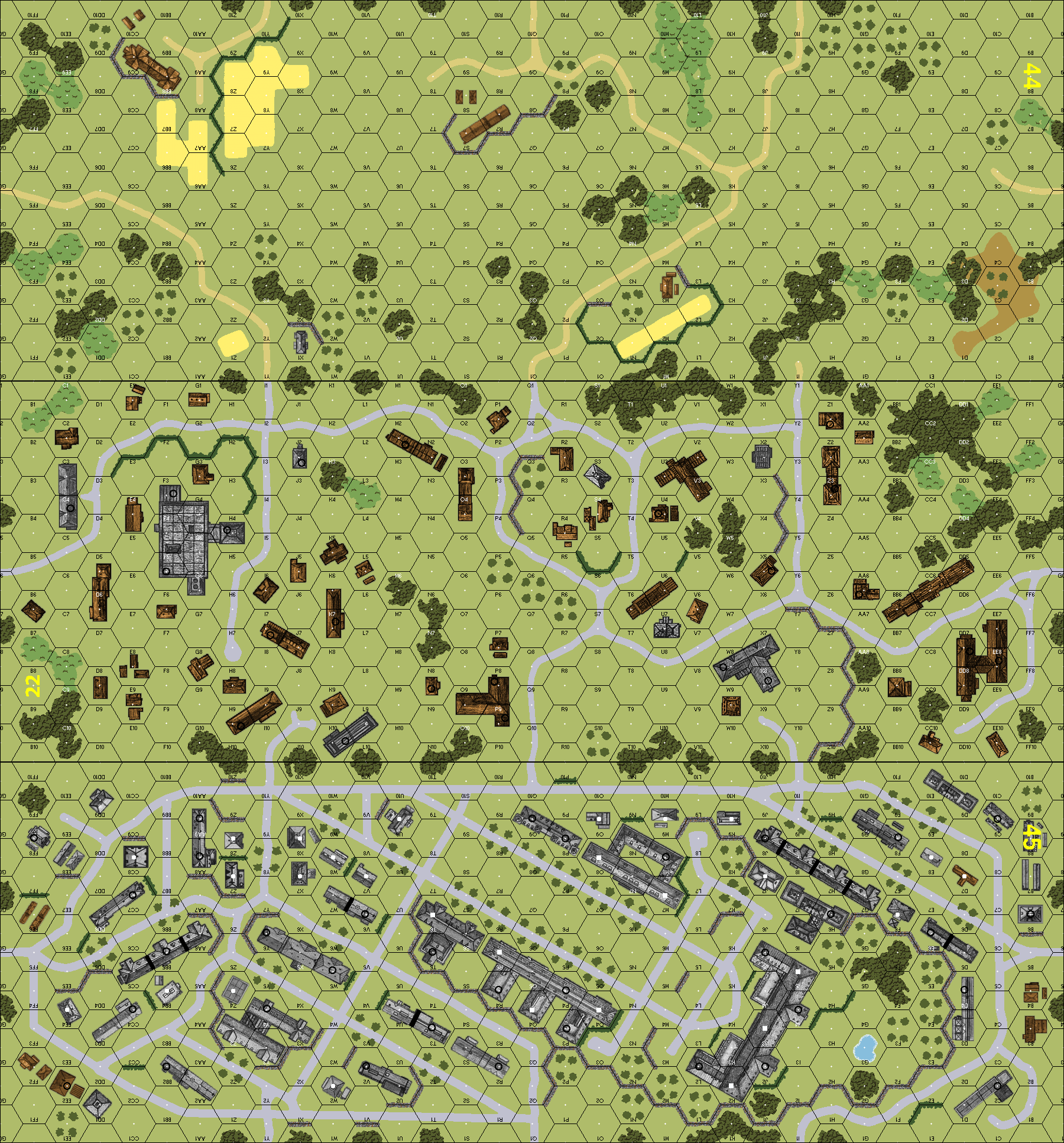 2025-11-03(D) Don Berg vs Don Berg German winGermans set up the machine guns in upper floor locations across board 22. The Poles attacked on the German right. The Germans forgot about the Polish reinforcements entering behind their front line, so immediately fell back on the left flank and fought a controlled fighting withdrawal on the right and center, to great effect. In the end the Polish tanks were destroyed or in hiding, while almost all the Polish leaders were lost, so the attack petered out in the face of a solid German line, just in front of the victory buildings.