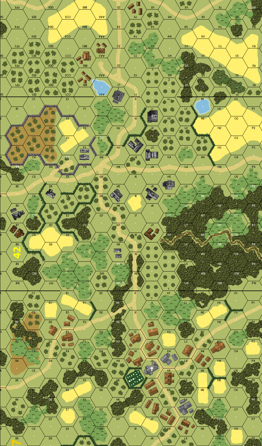 | Misc Rules: | Ponds: Level 0 OG. A: Enter in Convoy (E11.) and single Column (E11.5) D: Not SS (A25.11) |